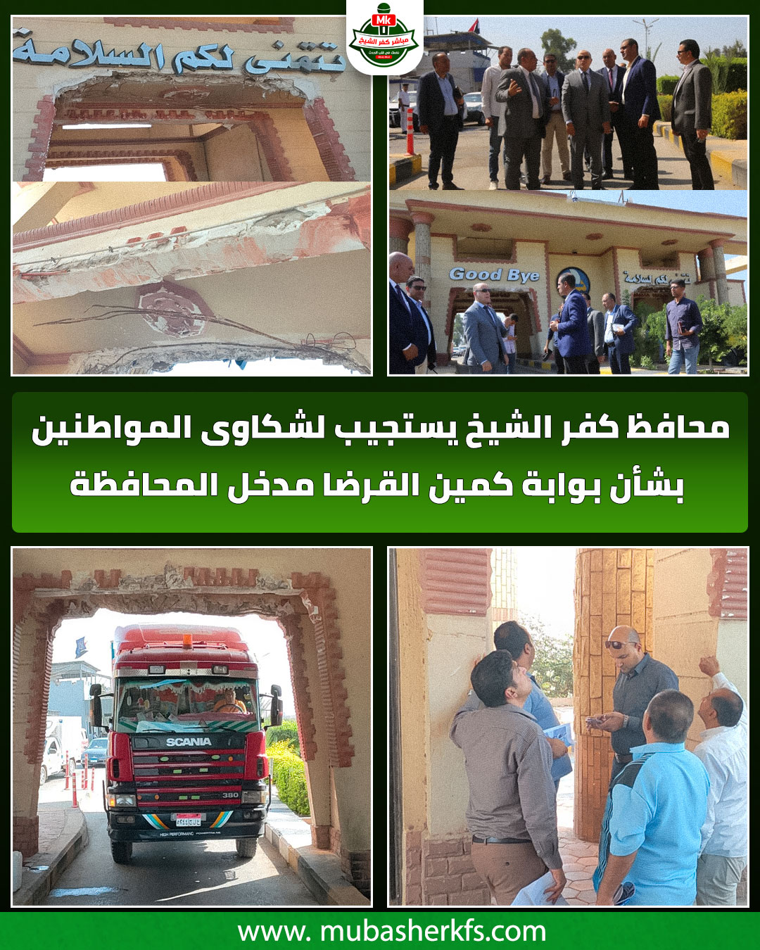 في استجابة سريعة لما ورد من شكاوى المواطنين بخصوص بوابة مدخل كمين القرضا مدخل محافظه كفر الشيخ ، وجّه اللواء دكتور علاء عبد المعطي، محافظ كفر الشيخ، بتشكيل لجنة مكبره من جامعه كفر الشيخ كليه الهندسه كليه التربيه النوعيه كليه الزراعه الاداره العامه للتخطيط العمراني بالمحافظه اداره التنسيق الحضاري بالمحافظه الاداره الهندسيه بالوحده المحليه لمركز ومدينه كفر الشيخ الاداره العامه لمرور كفر الشيخ وهيئه الطرق بمحافظه كفر الشيخ ، لفحص البوابة والوقوف على السلامه الانشائيه للبوابه والحاله الفنيه والشكل العام والمظهر الحضاري للبوابه حتى تتناسب مع مدخل مدينه كفر الشيخ وتقييم حالتها الفنية والإنشائية على الطبيعة.