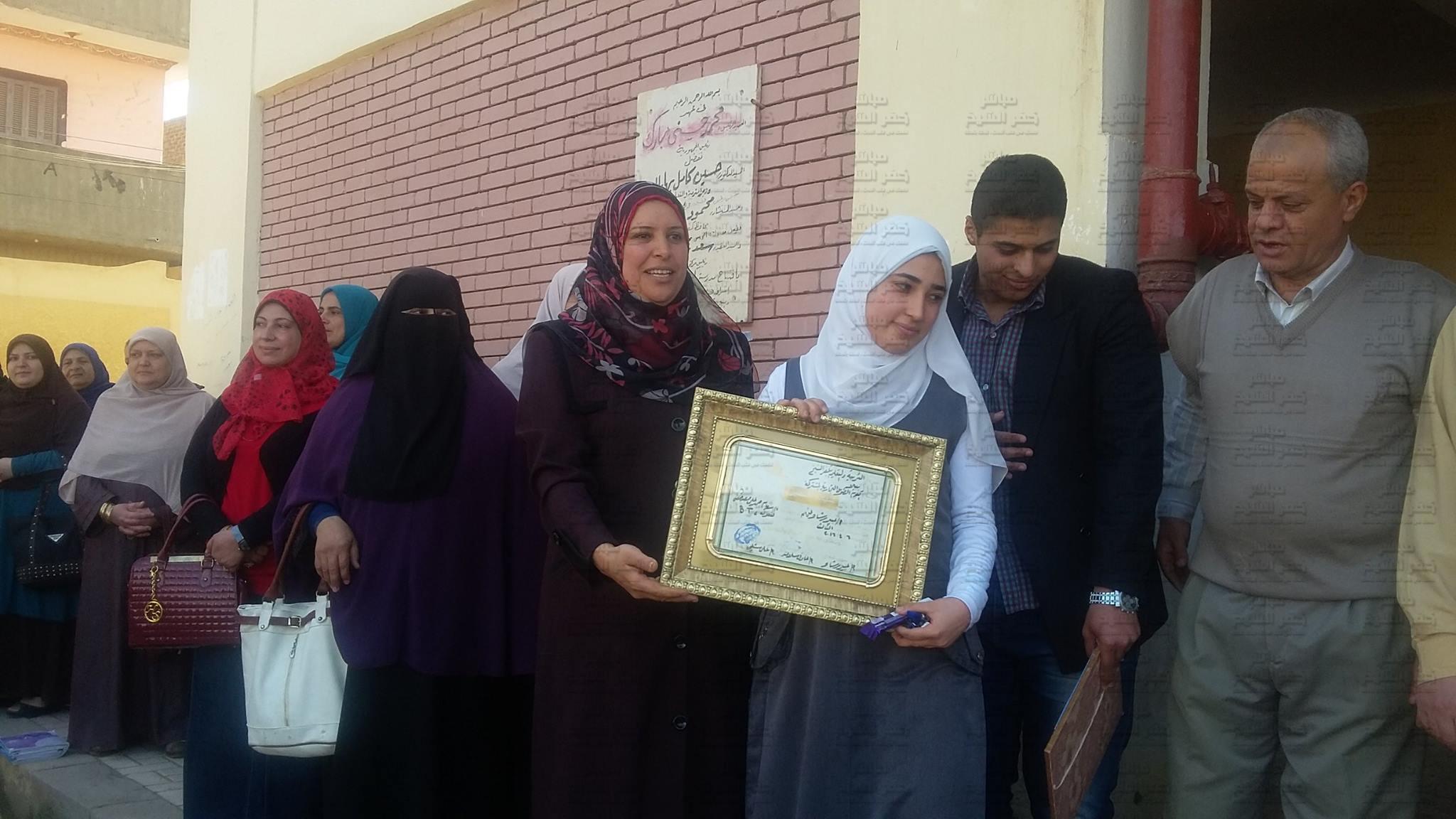 وفازت الطالبة اسماء اشرف السيد بالصف الأول بالامانة وحسن الخلق وتميزها بالهدوء والتركيز فى المواد الدراسية